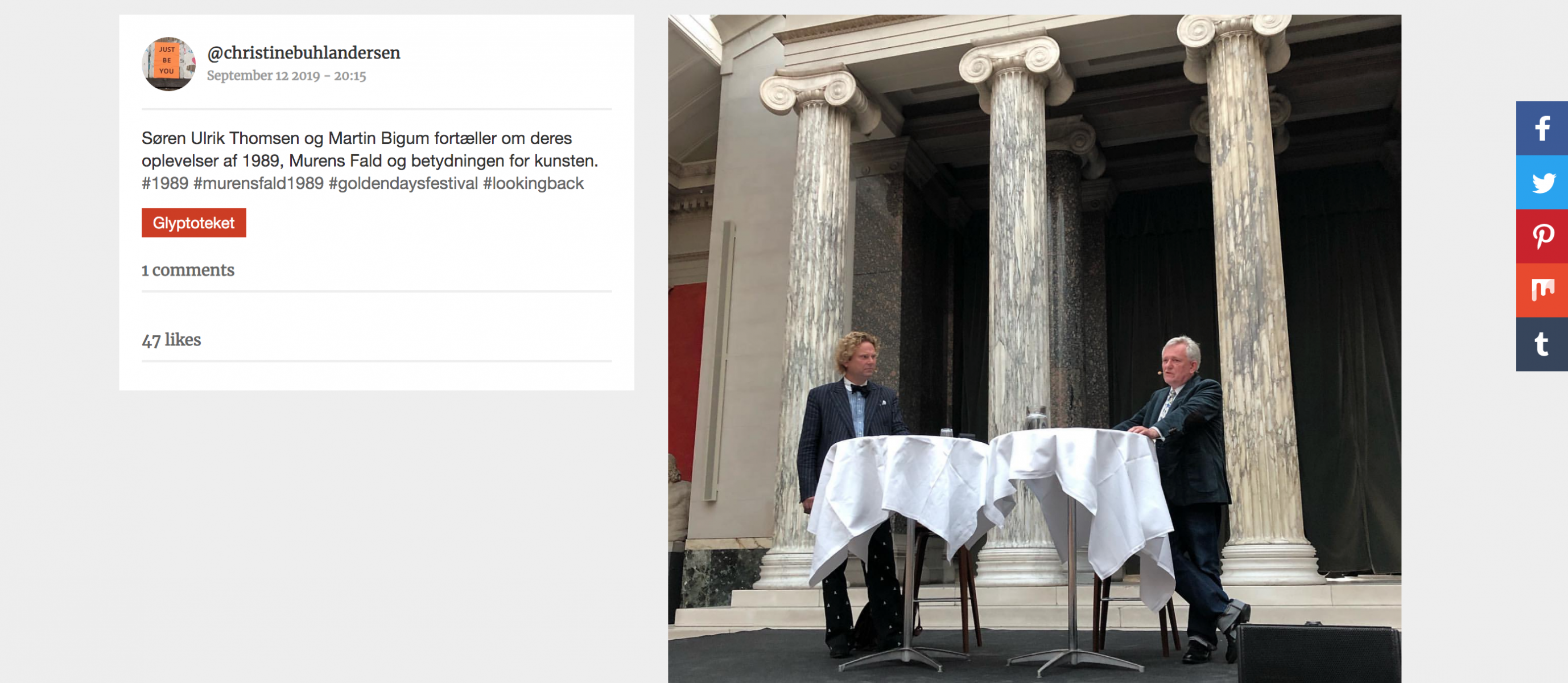 13 Sep 2019 Thank you all 450 audiences at Ny Carlsberg Glyptotek: sold out TALK about the state of the arts before and after the fall of the Berlin Wall: Poet Søren Ulrik Thomsen and Martin